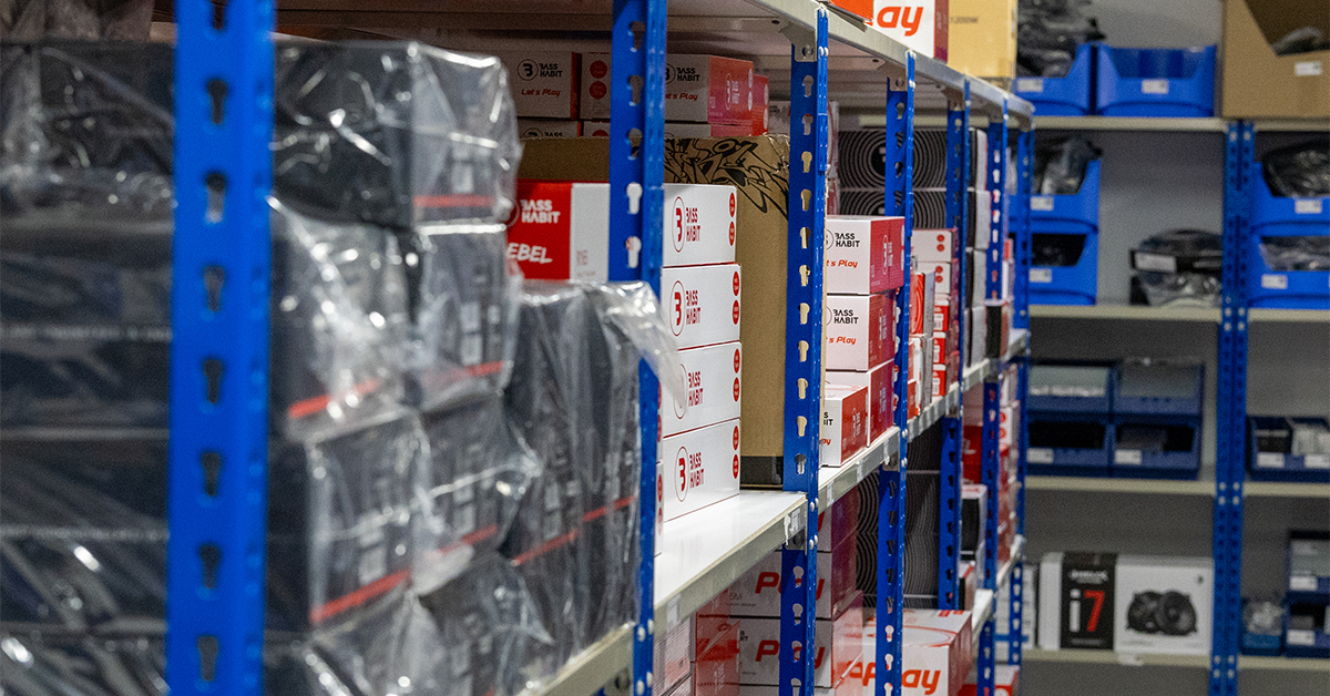 I reolene på lageret til Bass Brothers finner du det Frode beskriver som «alt mulig». Importerte bilstereoer, deler som brukes til å produsere skreddersydde bilstereoløsninger, og så klart ferdige egenproduserte produkter som skal ut til kundene.